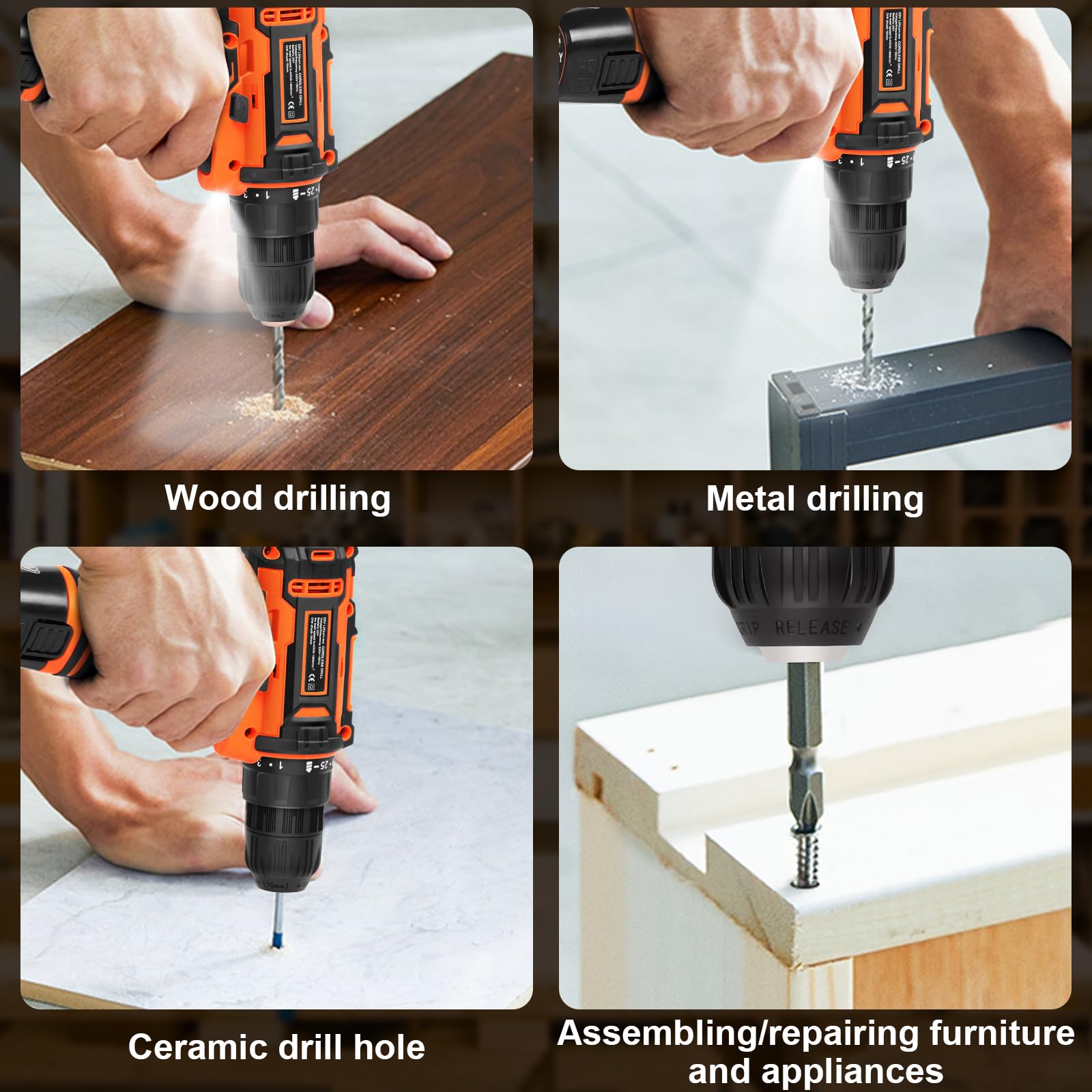 - 【Easy To Carry&Storage】The portable drill can easy to operate multi home works by men and women. The battery drill cordless can help you rigid of the fatigue.