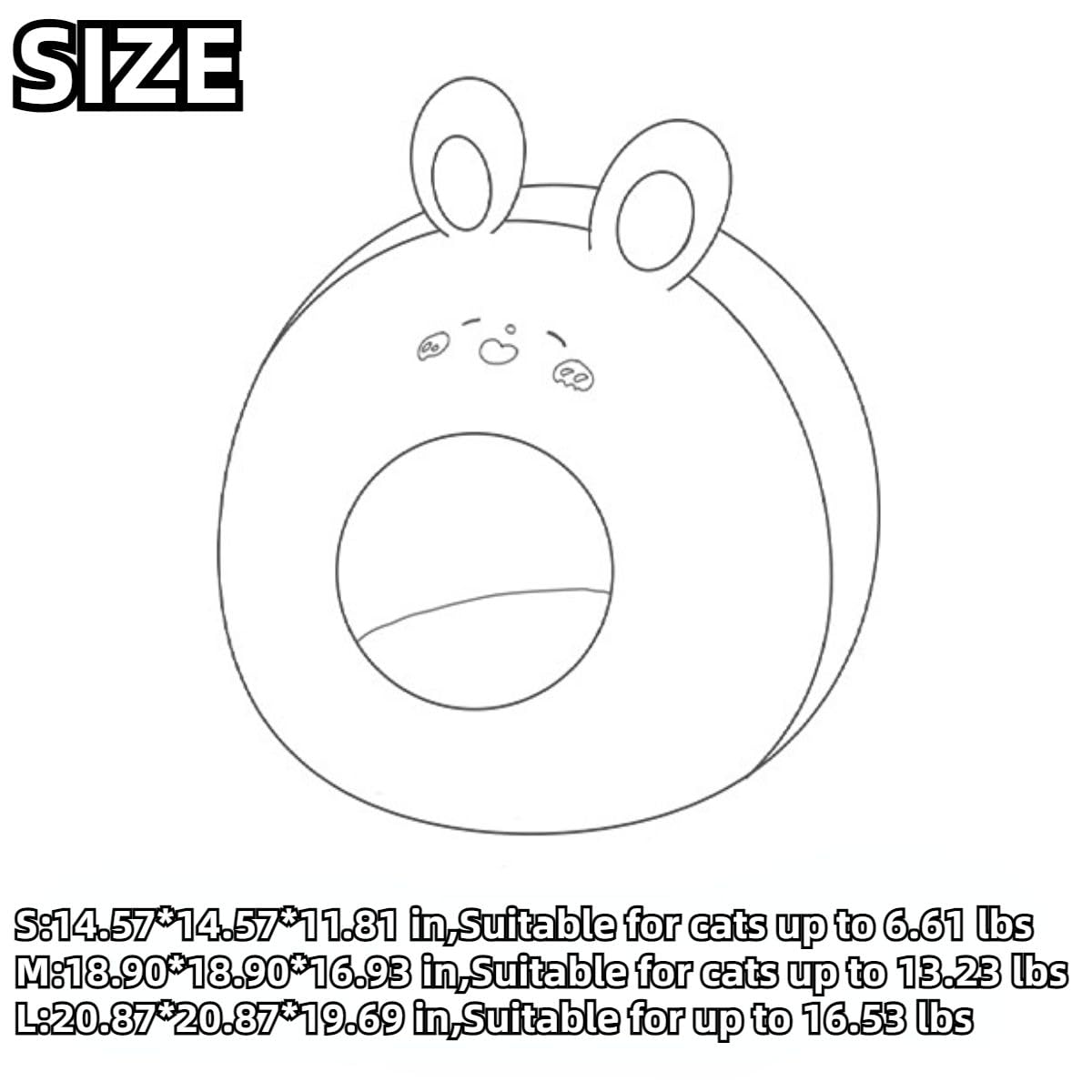 - Please kindly check the SIZE CHART in Product Description below before ordering. S-14.57"L x 14.57''W x 11.81''H,Suitable for up to 6.61 lbs ;M -18.90"L x 18.90''W x 16.93''H,Suitable for up to 13.23 lbs;L-20.87"L x 20.87''W x 19.69''H,Suitable for up to 16.53 lbs.
