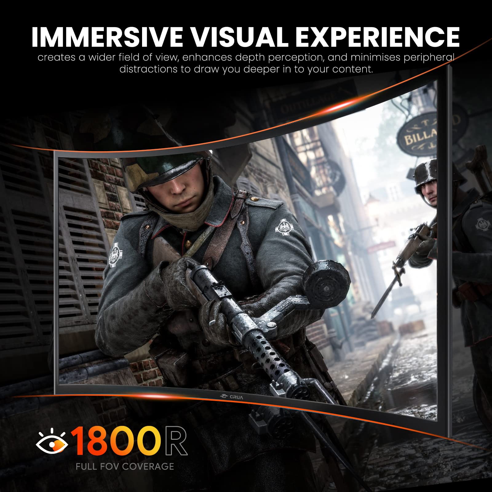 CRUA 27" Curved Gaming Monitor, FHD 1920x1080P, 144Hz/180Hz Computer Monitor, 1800R VA Screen, 99% sRGB, FreeSync, HDMI & DP, Wall Mount Install- Black
