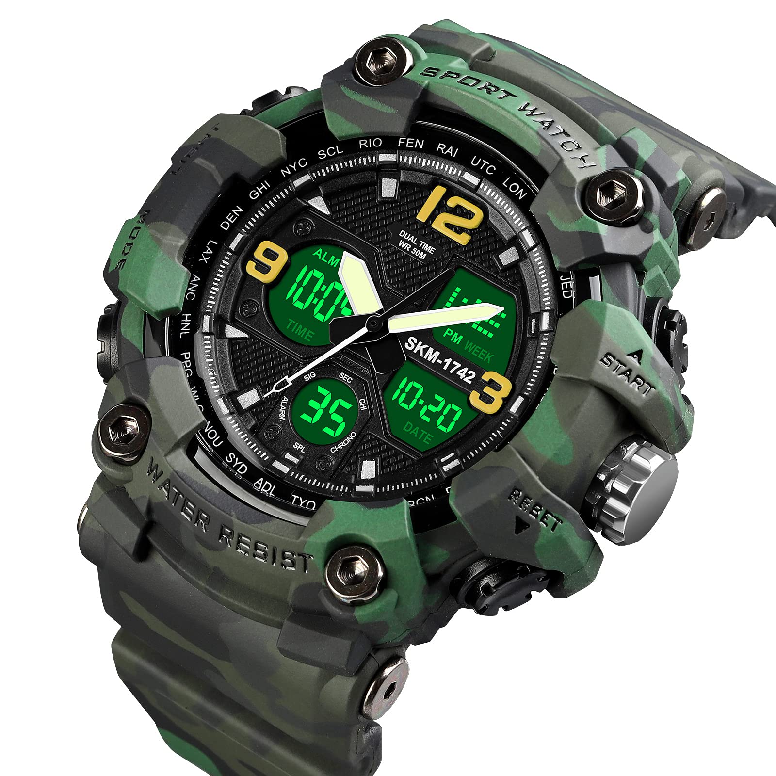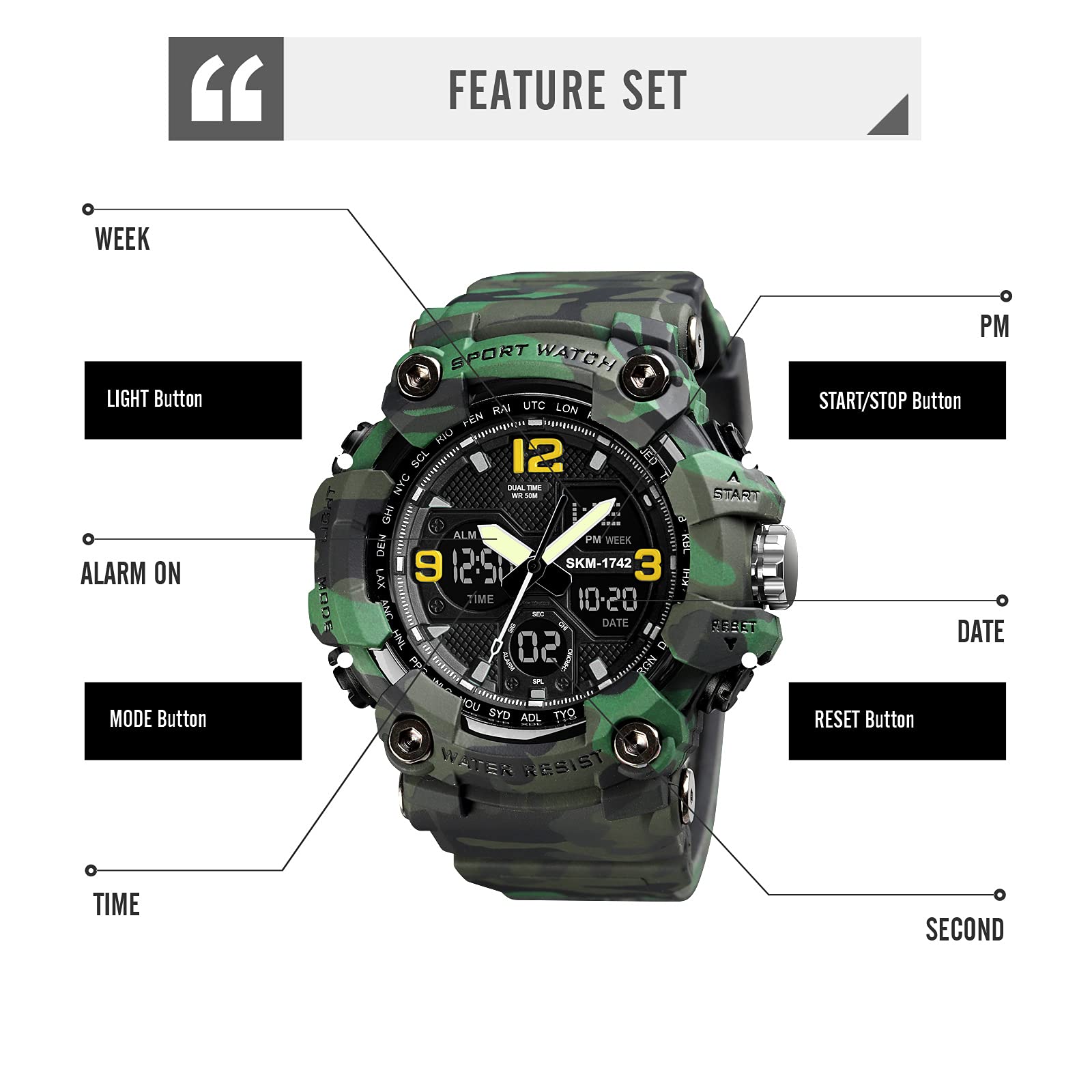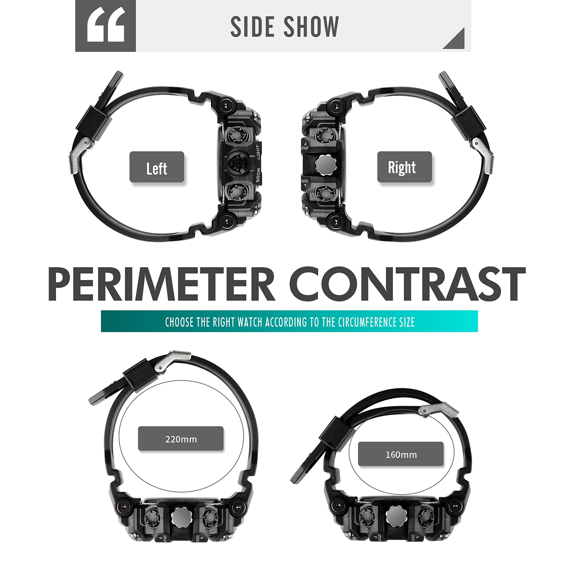 - Military Watch:This is a watch that supports both digital and analog displays. It provides two different time zones for simultaneous setup and reading, Big face (1.96"/ 50mm ) stylish sports dial design.Note: the digital readout is partial dark.