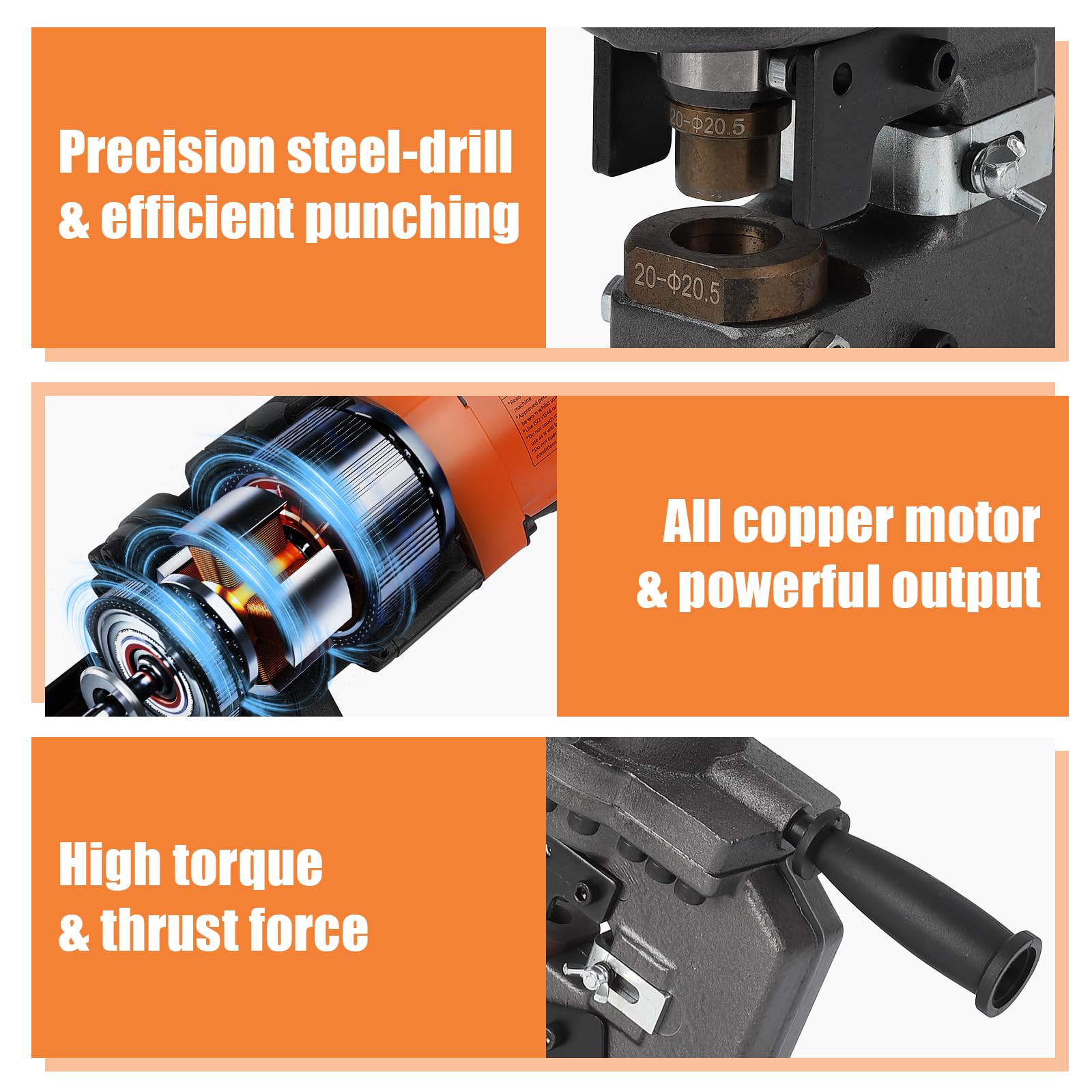 Electric Hydraulic Hole Punch for Metal Φ1/4"-4/5", 1200W 110V Hole Puncher Machine Constuction Tools, Hole Punching with Carbon Brush 5 Dies for Steel Iron Aluminum Plate, Copper