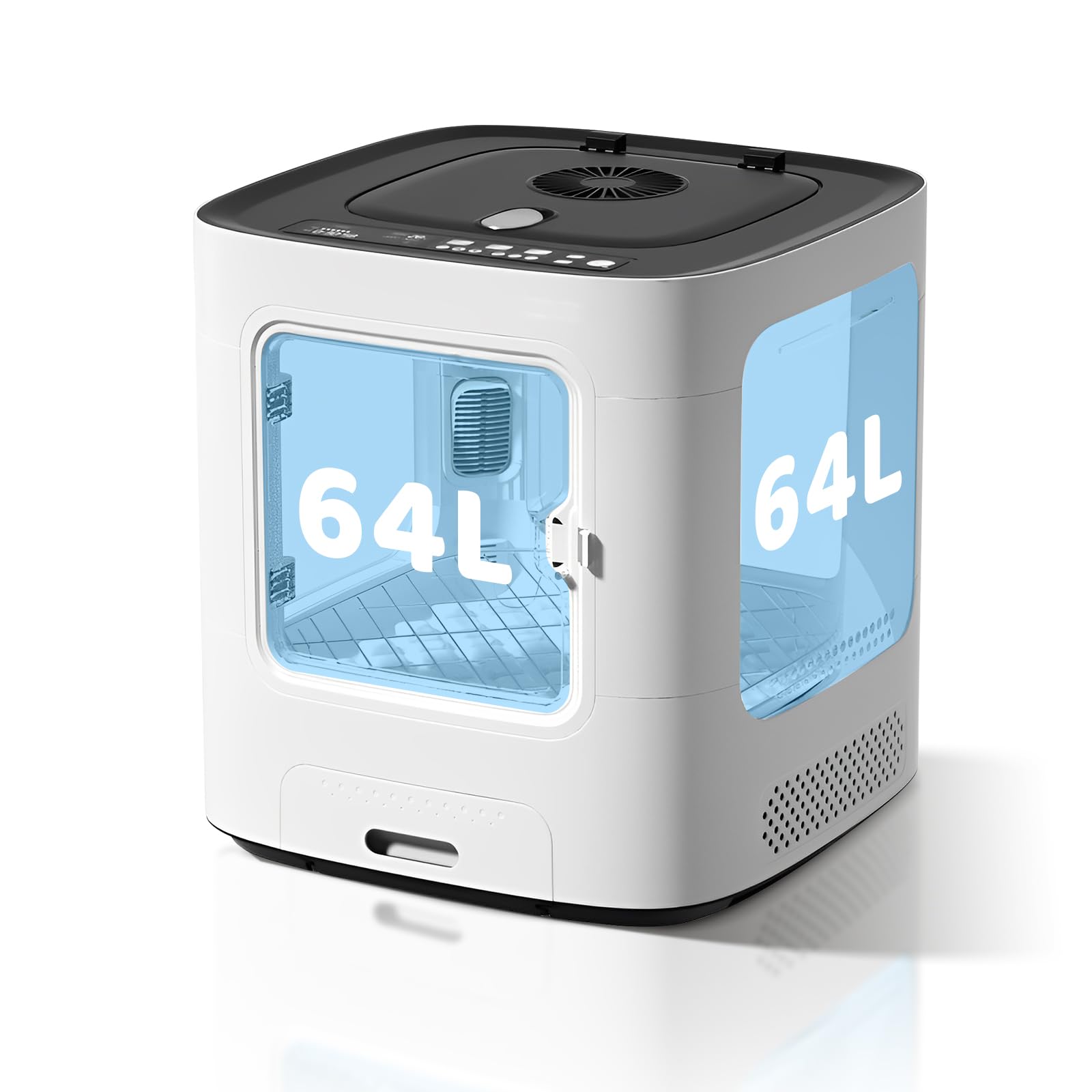 - Spacious and Comfortable Design: This pet dryer box features a spacious 64L capacity, perfect for Cats and Small Dogs. Designed with pets' comfort in mind, it provides ample room to move around freely, ensuring a relaxed and stress-free drying experience. 4 drying modes for you to choose.The temperature and time are adjustable, you can customize
