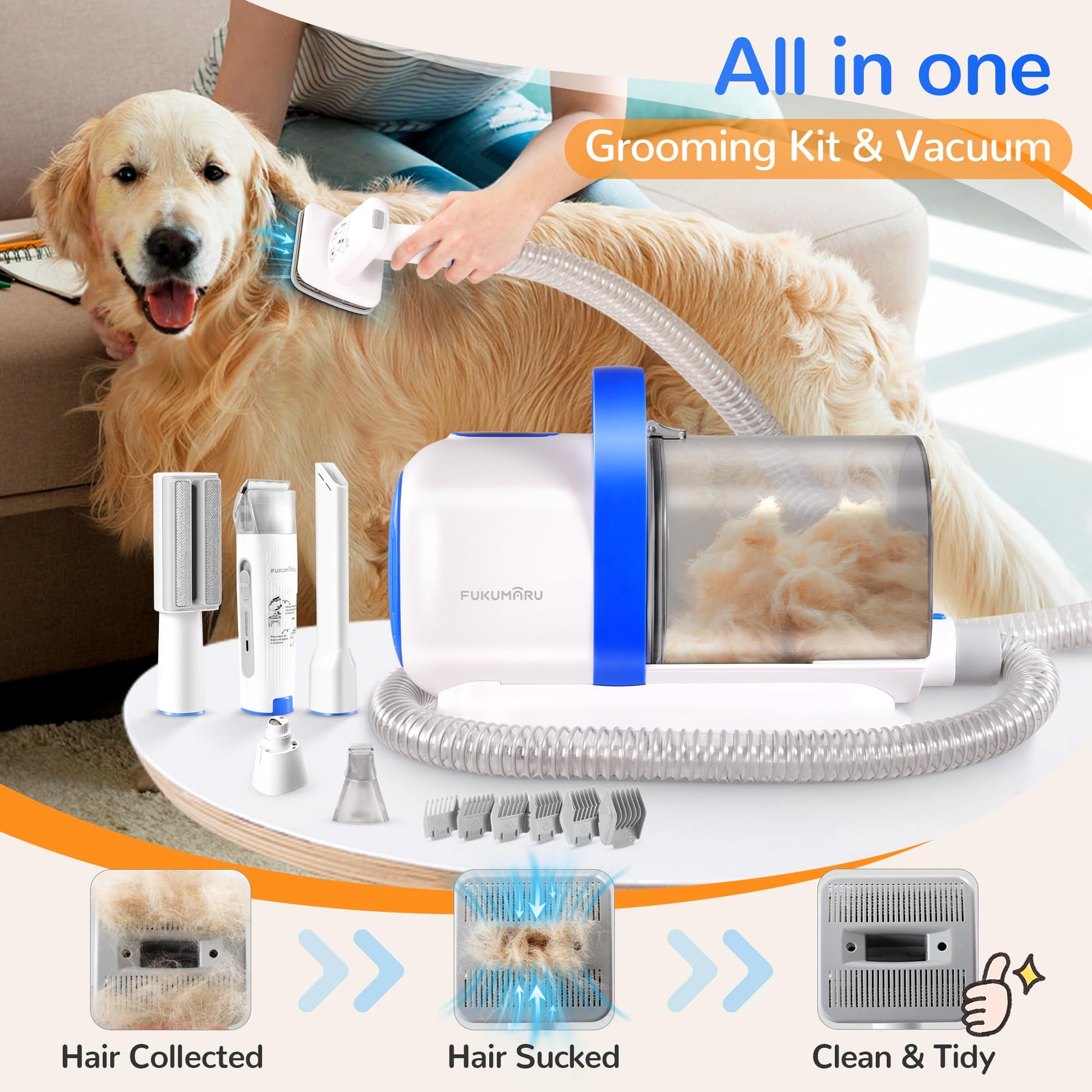 FUKUMARU Dog Grooming Vacuum & Pet Vacuum Grooming Kit, Pet Grooming Vacuum for Dogs, Dog Hair Vacuum with Pet Clipper Nail Grinder, 2L Dust Cup Dog Brush Vacuum with 6 Pet Grooming Tools for Shedding