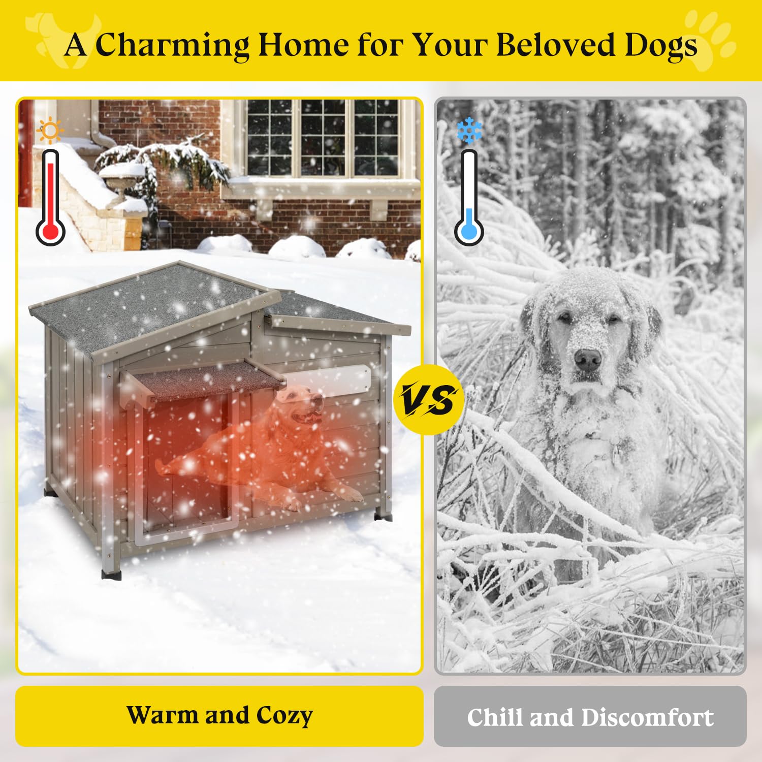 - 【Flip-up Window】The flip-up window allows for ventilation during hot summer days and can be closed during winter or rainy seasons to block out rain and cold drafts, providing a comfortable environment for your dog.