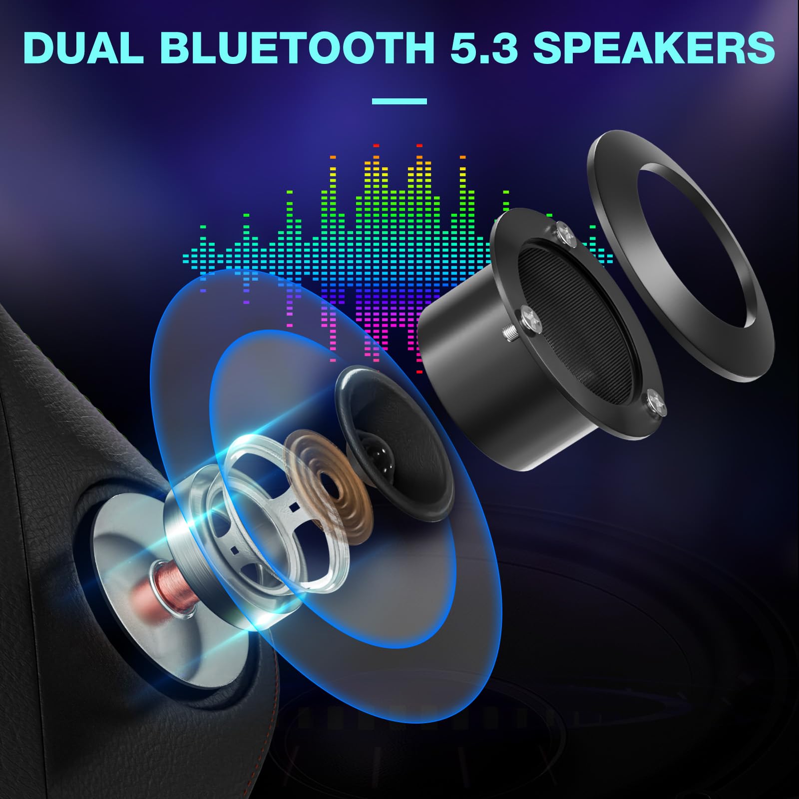 - 【Bluetooth 5.3】Designed with dual bluetooth 5.3 speakers, provide you with stronger and more stable signals in a variety of complex environments