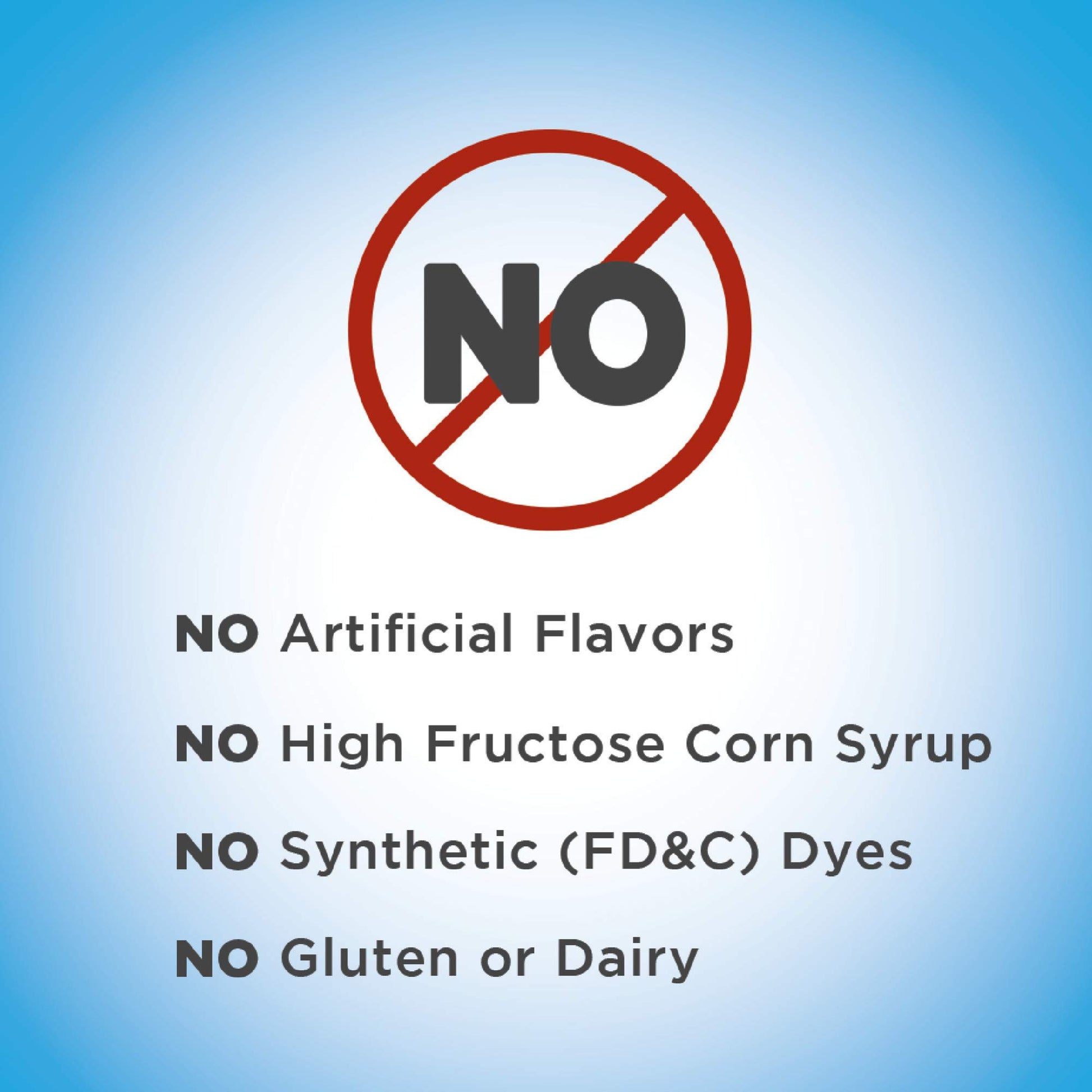- Contains no high-fructose corn syrup, no synthetic (FD&C) dyes, no dairy and no gluten.