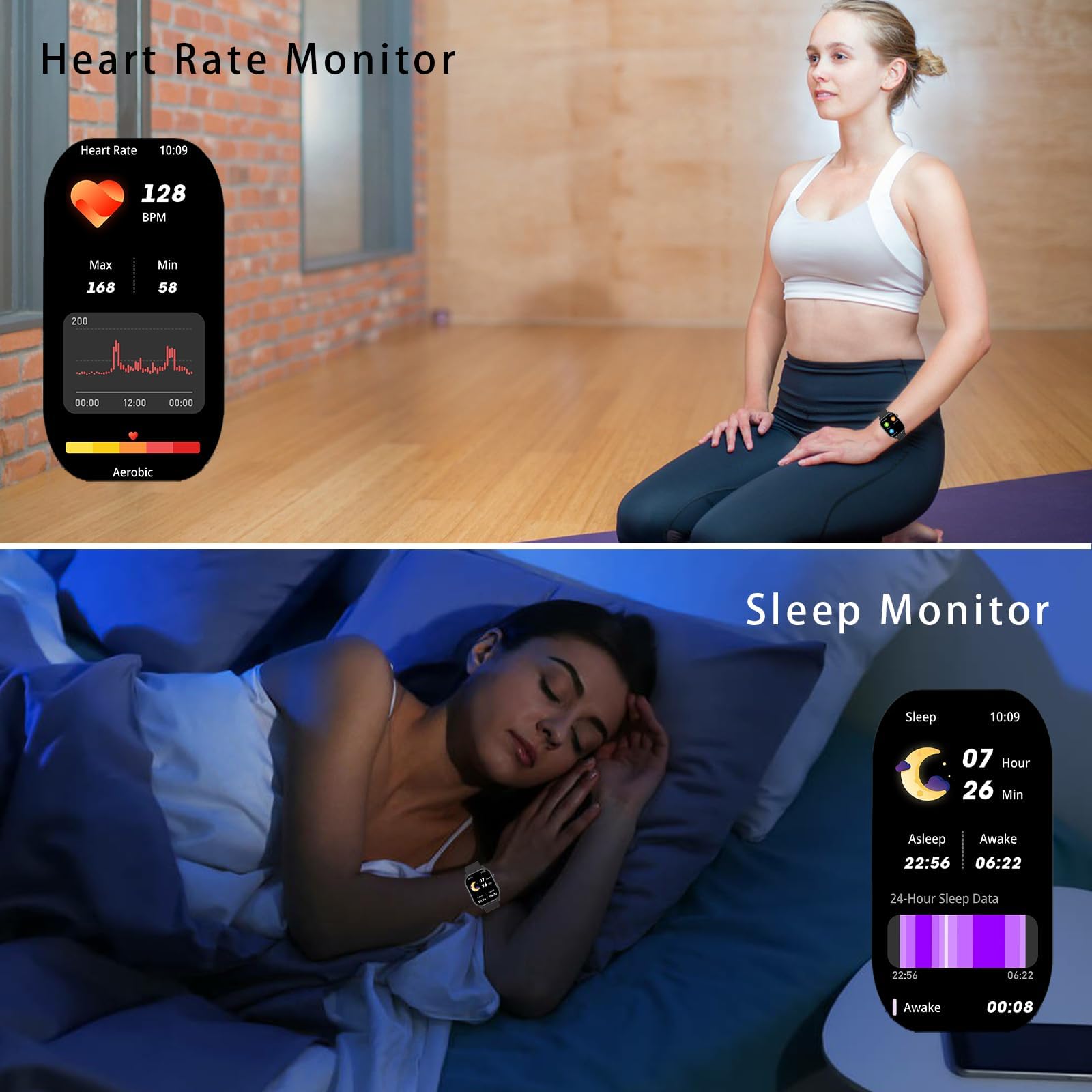 - 2-24-Hour Health Monitoring : Bluetooth Smart Watch with a high-performance optical sensor tracks your activities, including heart rate and steps. The fitness watch automatically monitors sleep stages and offers a weekly health report in the app for improved sleep habits and a healthier lifestyle