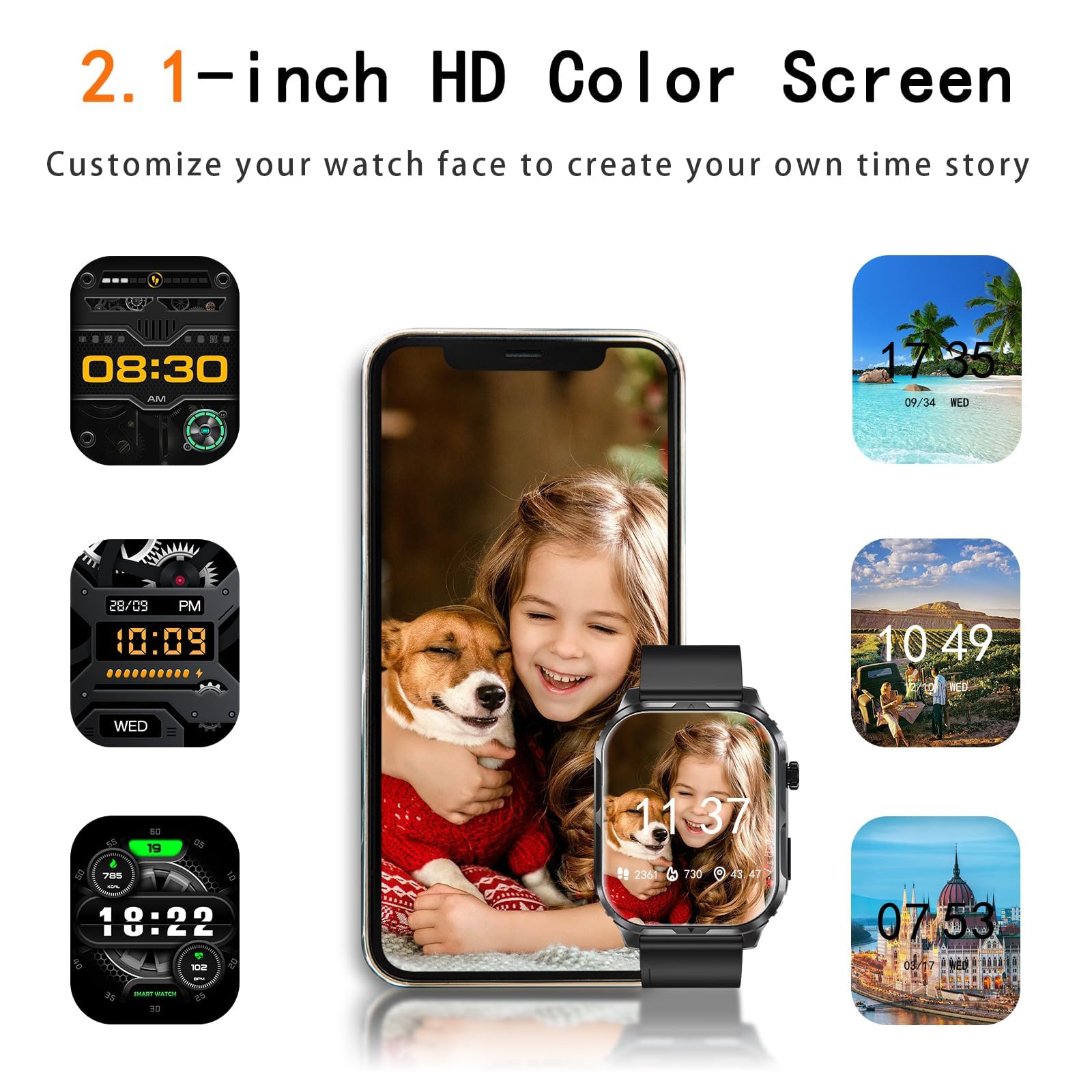 LEDXBNSS Smart Watch for Men Women with 2.1" HD Screen Military Watches, Call & Text for Android iOS, Heart Rate & Activity Tracker, IP68 Waterproof, 100 Sport Modes