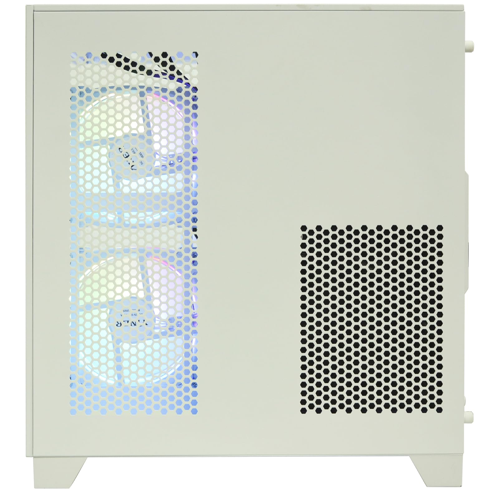 - Design & Extras: The PC is equipped with 4× RGB fans and lighting effects. These lights can be set according to the user's preference, adding a splash of colour to the PC and enhancing the overall visual effect. The chassis is designed with glass panel on three sides, which allows users to visualise the internal hardware layout and lighting effects. At the same time, the glass side panels also ensure good heat dissipation performance, ensuring that the hardware remains stable under prolonged operation Applicable Scenarios.