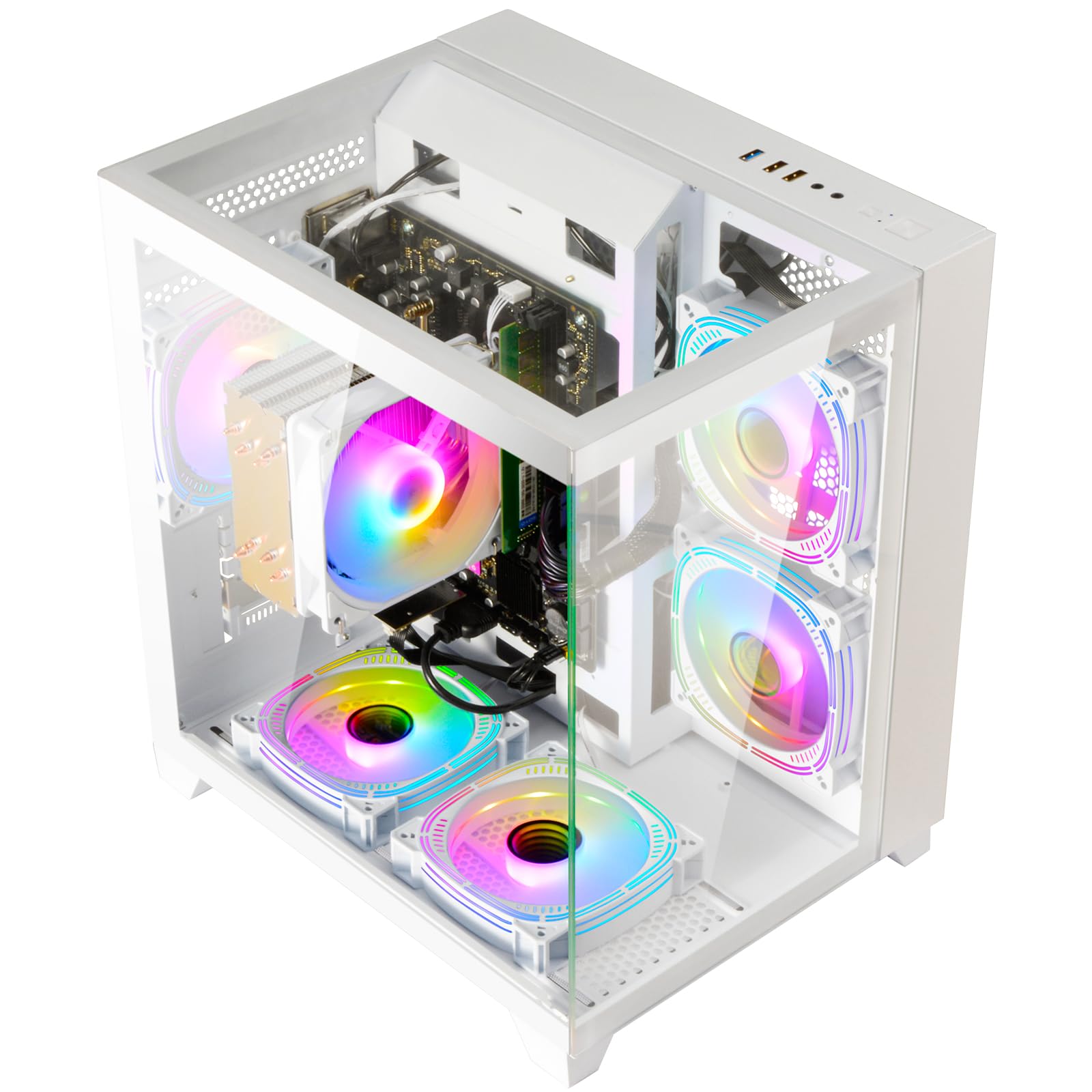 LXZ Desktop Computer AMD Ryzen 7-5700G 8 core 3.9GHz, 16G DDR4 RAM, 1TB NVME SSD, Tower Computer for Gaming, Home and Office (White)