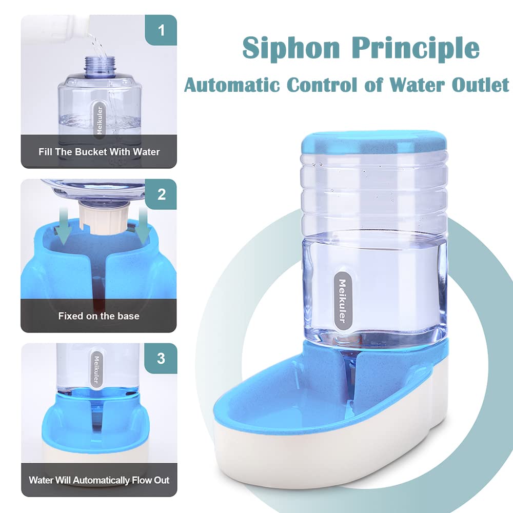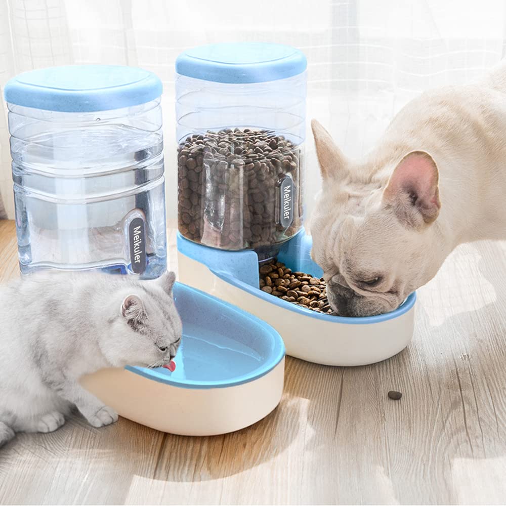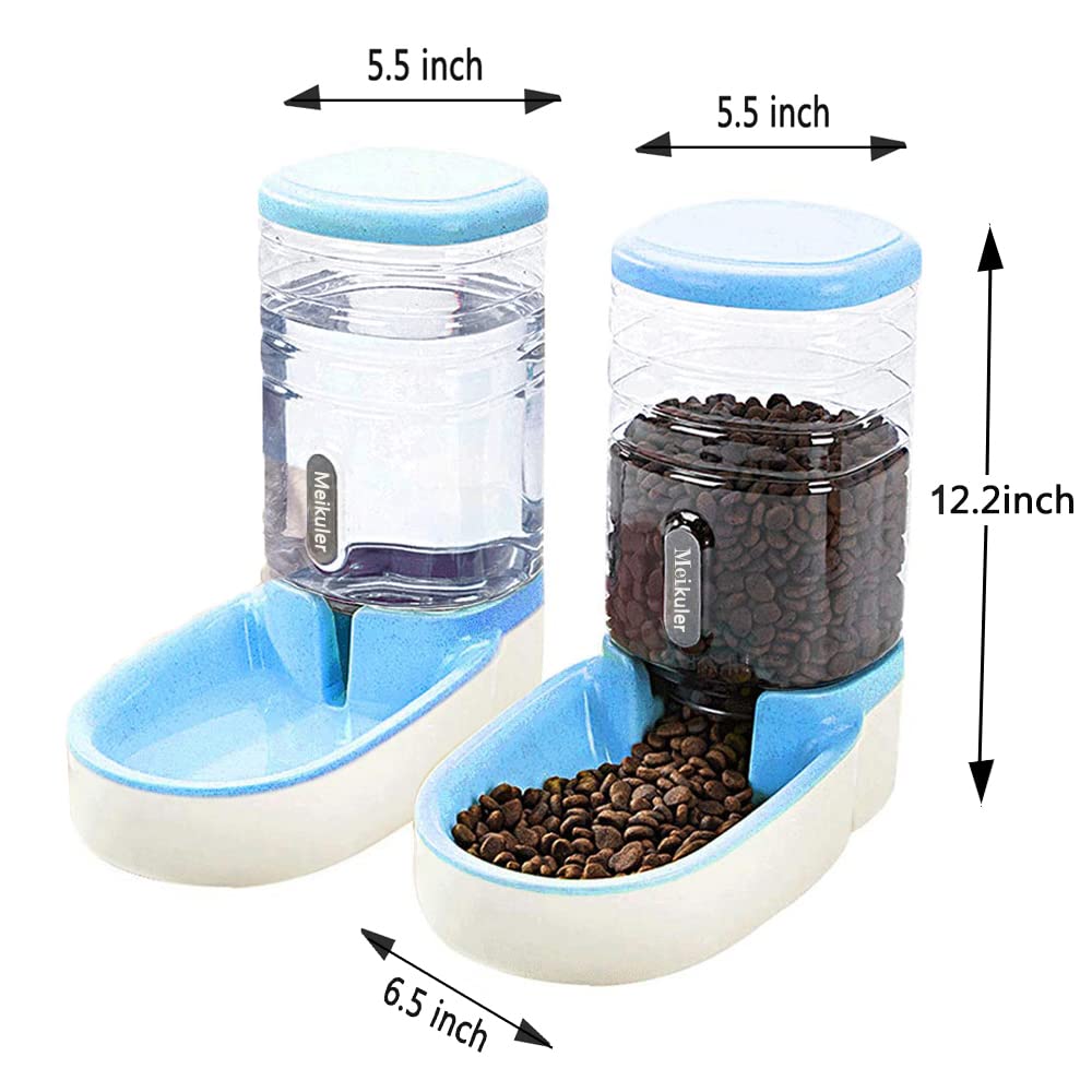 Meikuler Pets Auto Feeder 3.8L,Food Feeder and Water Dispenser Set for Small & Big Dogs Cats and Pets Animals (Blue)