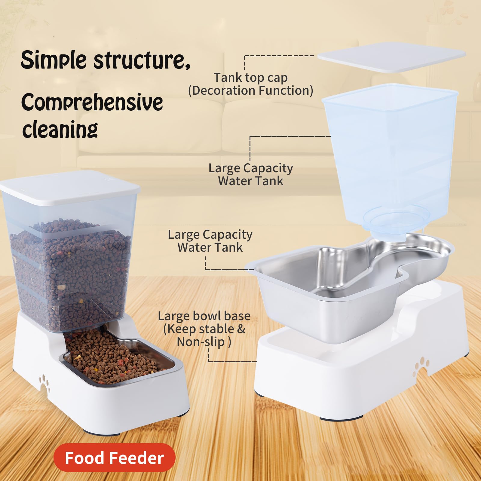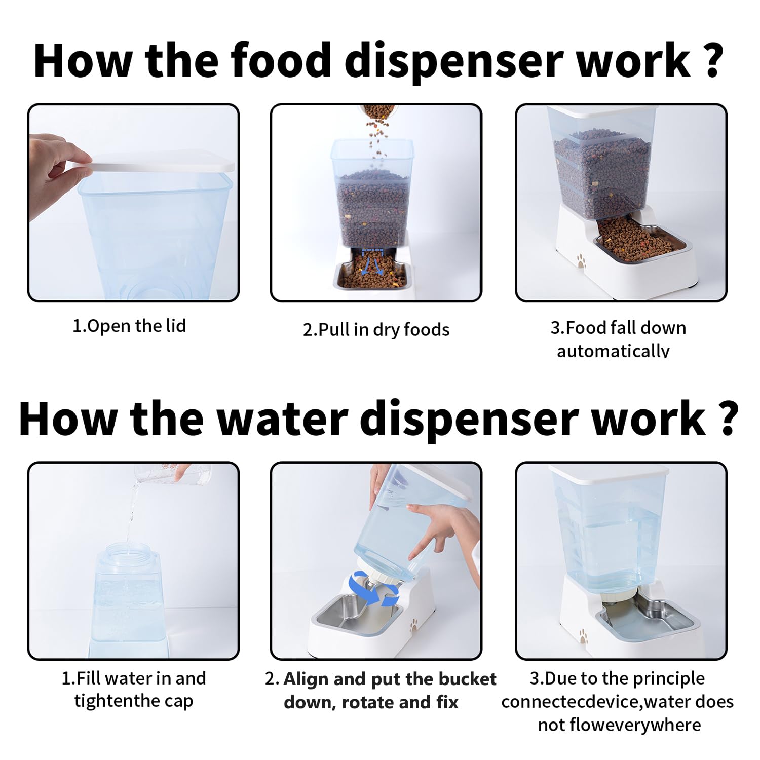 - 🐶Automatic food feeder and waterer dispenser set: Fill up with water and food, you can easily go out, work or short-term travel, saving you time. No more daily feeding.