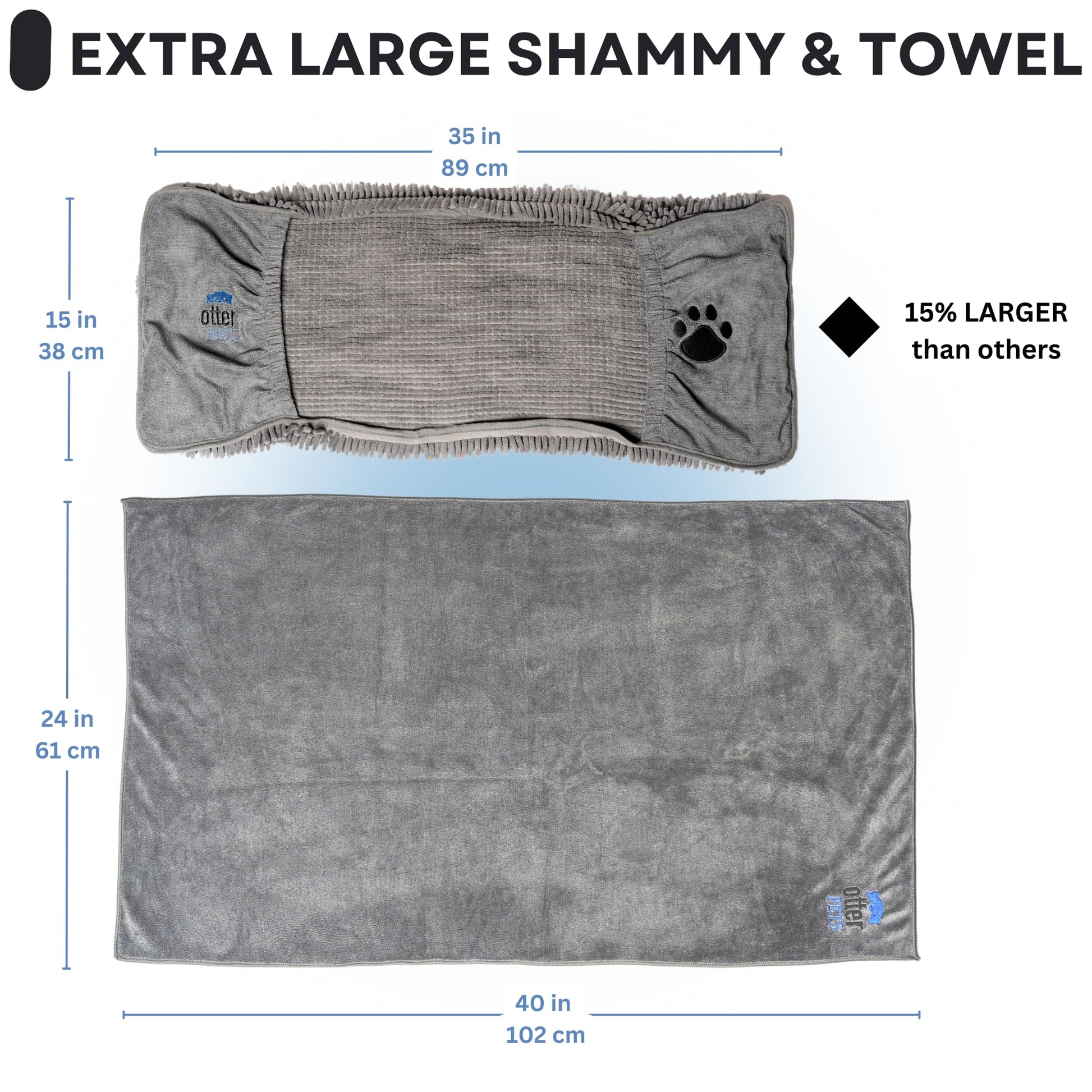 OtterPets 3 Piece Set: 2 Dog Towels and Dog Bath Brush. Dog Shammy and Microfiber Dog Towel. Super Absorbent Towels, Dog Bath Supplies, Dog Scrubber for Bath