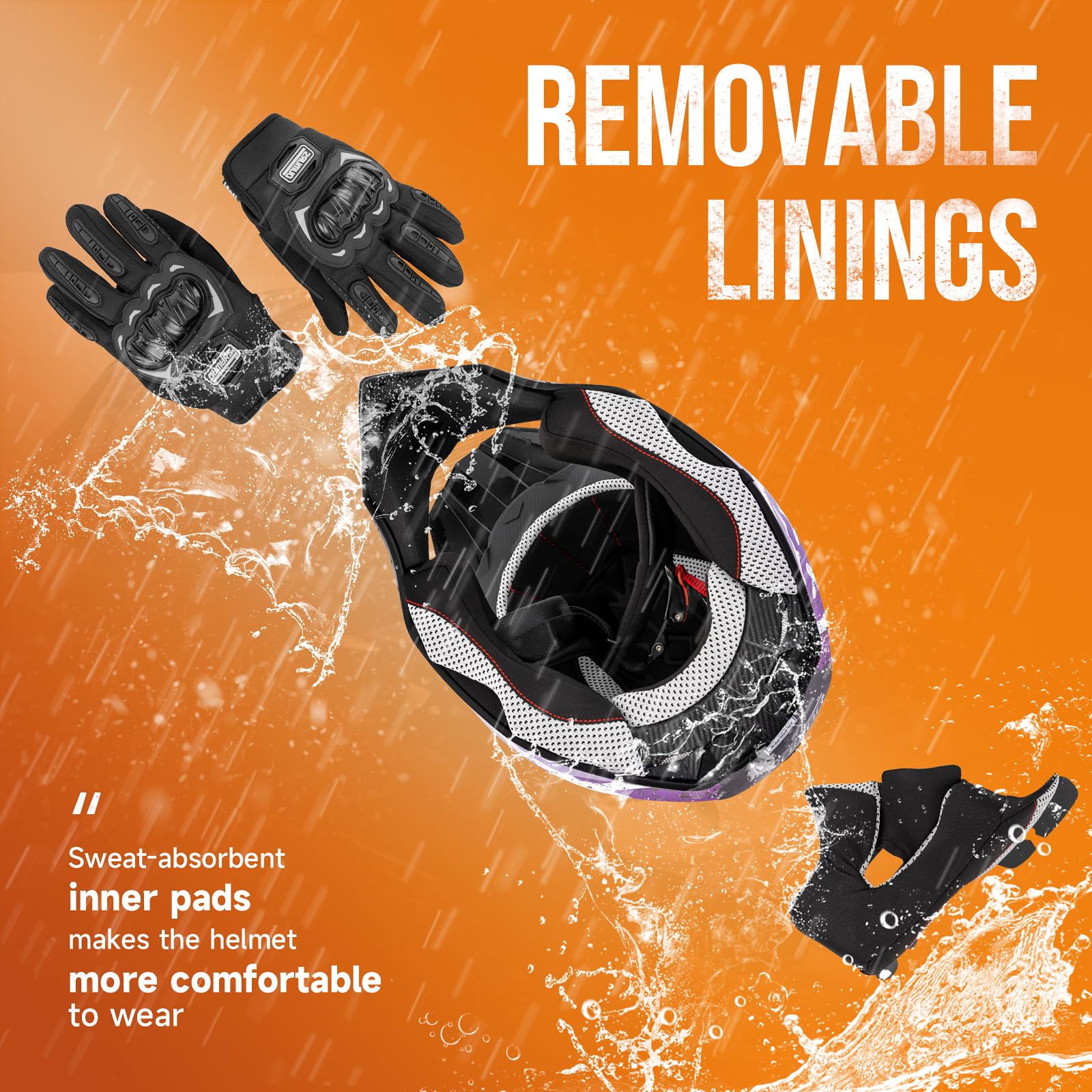 - With Goggles Gloves and Mask - OUMURS Dirt Bike Helmet include the goggles, gloves and mask which you need to in driving. Put on the accessory equipment, windproof and UV resistant, can resist the interference of the sun and give you a more clear and wide vision in riding