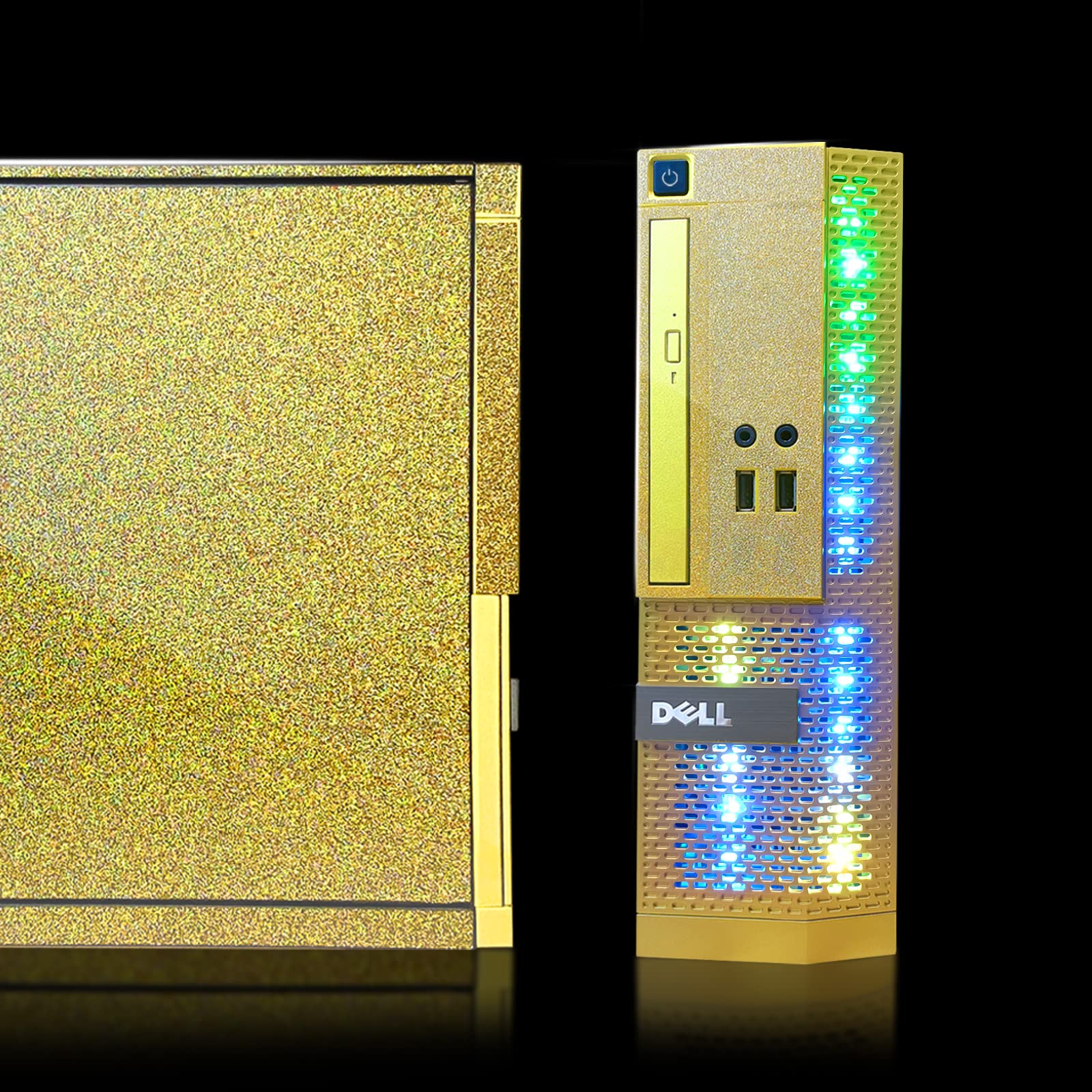 PC Gold Treasure Box RGB Dell Desktop Quad Core I5 up to 3.6G, 16G, 512G SSD, WiFi, Bluetooth 4.0, RGB Gaming Keyboard & Mouse, DVD, New 22" 1080 FHD LED, RGB Sound Bar, Webcam, Win 10 Pro (Renewed)
