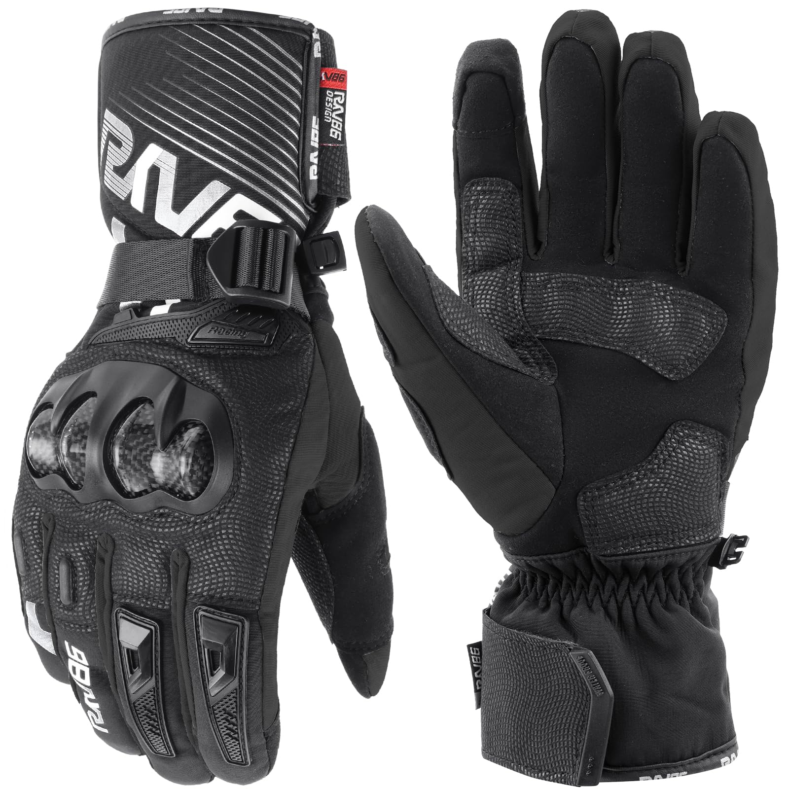 RKV86 Motorcycle Gloves for Men Winter Riding Gloves with Carbon Fiber Protective Motorbike Powersports Racing Gloves with Touchscreen for Outdoor Sports Black L