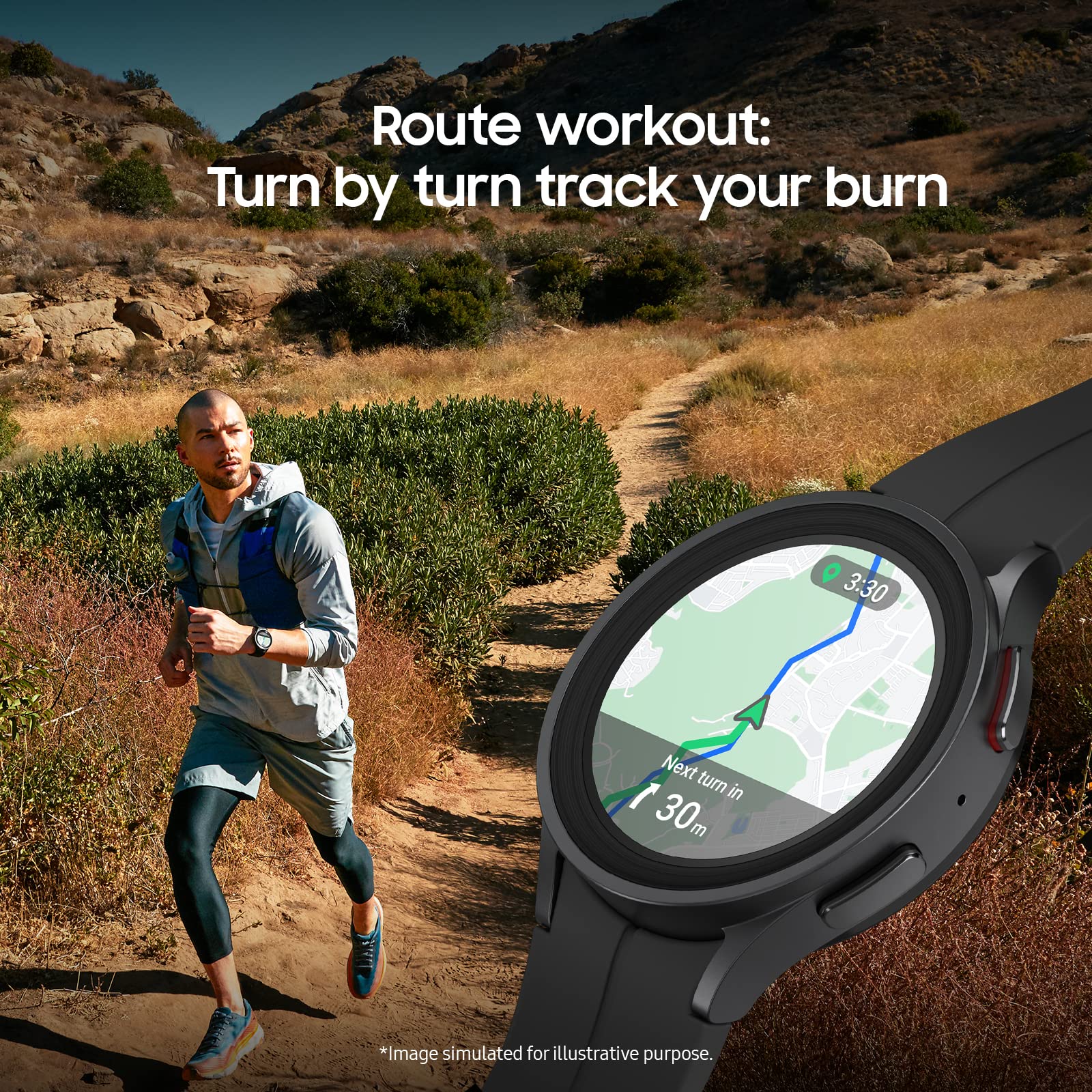 Details: PRODUCT OVERVIEW:Stay on track, on time, and in style with Galaxy Watch5¹. Ready to get a better understanding of your wellness? Galaxy Watch5 features body composition analysis², improved sensors that get an accurate read on your heart rate³ and Advanced Sleep Coaching¹ that helps you get your zzzs . Whether you’re getting your steps in, jogging at lunchtime or crushing yoga class on the weekend, strut your fashion sense with Watch bands and faces that match your awesome outfit. Stay powered up on the go throughout even your busiest day with an improved battery that gives you time to do it all. Worry less and do more and with a Sapphire Crystal Glass that’s more durable than before and a water resistant design that can take a splash⁴ or two. Go ahead, unleash the best you with Galaxy Watch5.KEY FEATURESAdvanced Sleep Coaching - Develop better sleep habits with Advanced Sleep Coaching that helps you manage your overall sleep quality.¹Body composition analysis (BIA) - Get stats that help you be at your best with body composition info right on your wrist — everything from body fat readings to your Body Mass Index (BMI).²Improved sensor accuracy - Get more accurate wellness readings thanks to an improved, curved sensor that gets closer to your skin.³Auto Workout Tracking - Whether you’re running, swimming or rowing, make the most of every outdoor adventure with Auto Workout Tracking.⁴Improved battery - Stay powered up throughout your busiest days with an improved battery that can keep up with you.⁵Sapphire crystal glass - Do all your daily routines with confidence — the sapphire crystal glass face is 1.6x stronger to stand the test of the hardest days.⁵Enhanced GPS - Wander all you want and still know where you are with enhanced GPS and voice navigation right on your wrist.Galaxy Connected Experience - Stay connected on your adventures when you sync Galaxy Watch5 to your Galaxy mobile devices.⁶Extension of your phone - Do more when you pair your Galaxy Watch5 to your