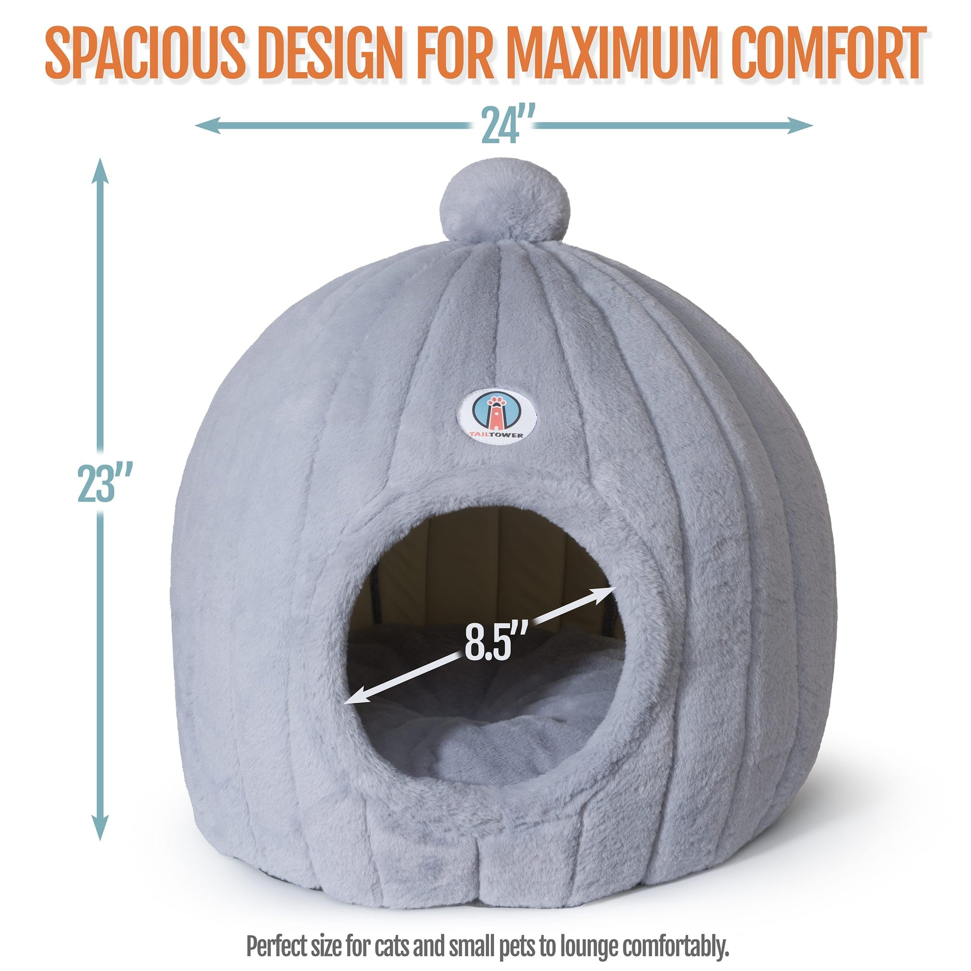 TAILTOWER Largest Cozy Dome Cat Cave Bed – Extra Spacious for Large Cats, Multi-Cat Homes & Small Dogs, Enclosed Plush Hideaway for Indoor Cats (24×23inch, Light Gray)