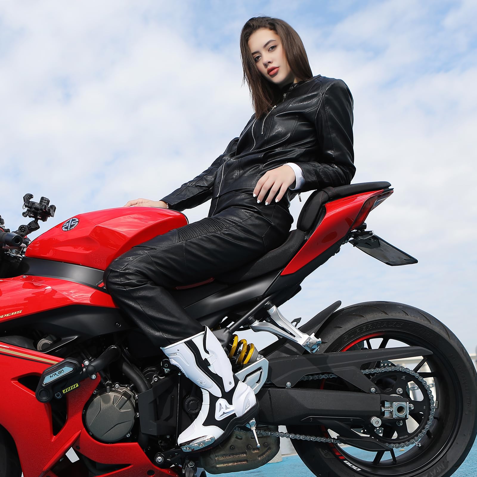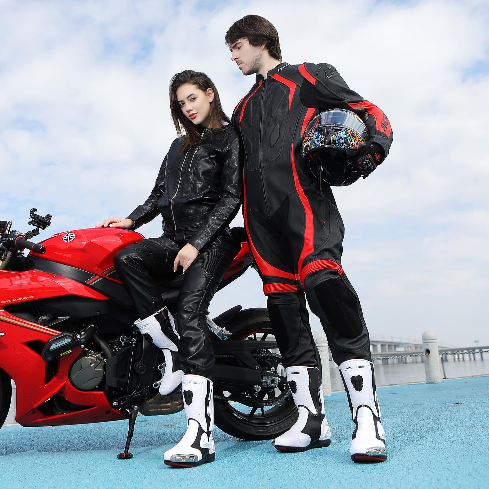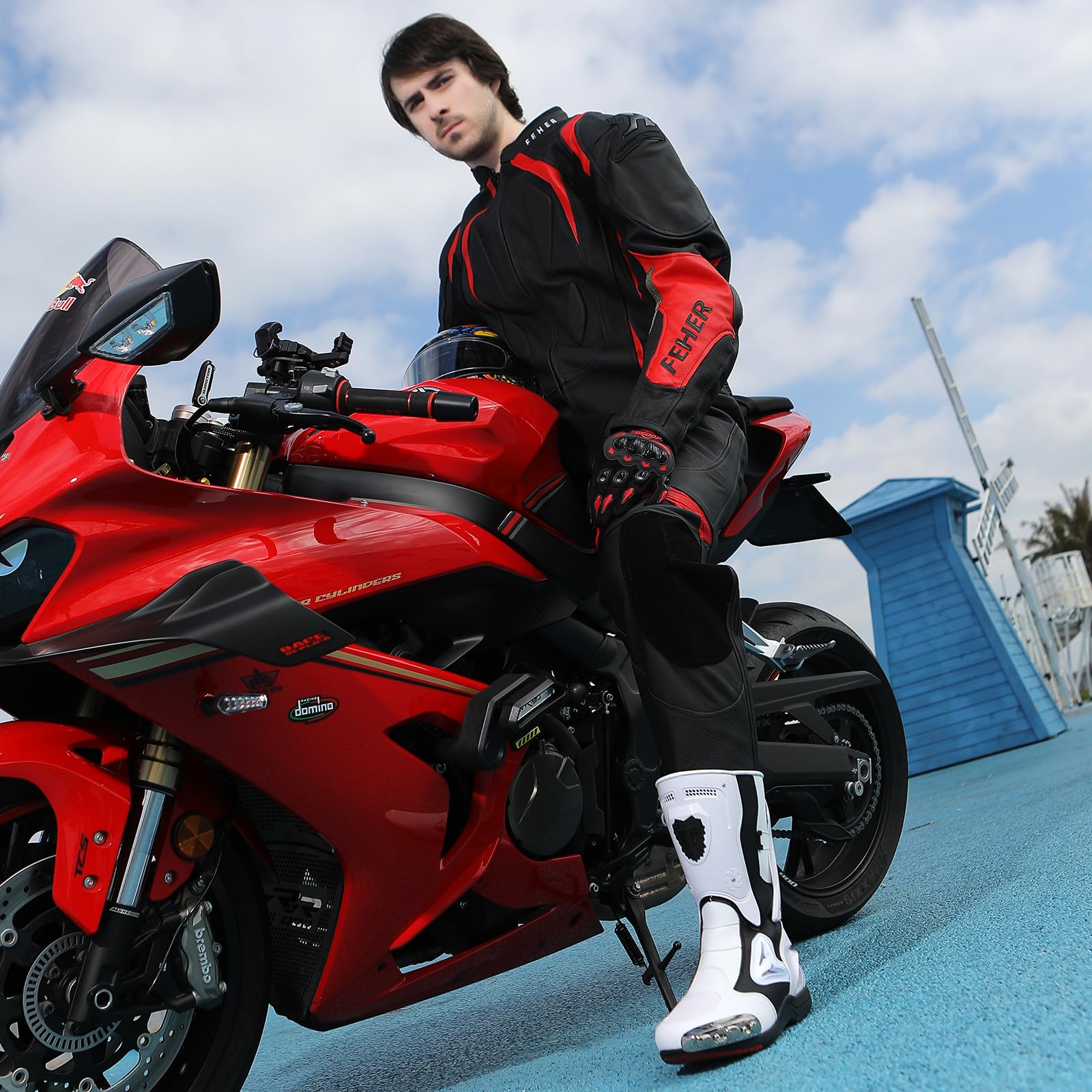 Zeozoom Motorcycle Riding Boots Motorcycle Leather Boots for Women and Men Protection Anti Slip Racing Sports (White, Adult, Men, 10, Numeric, US Footwear Size System, Medium)